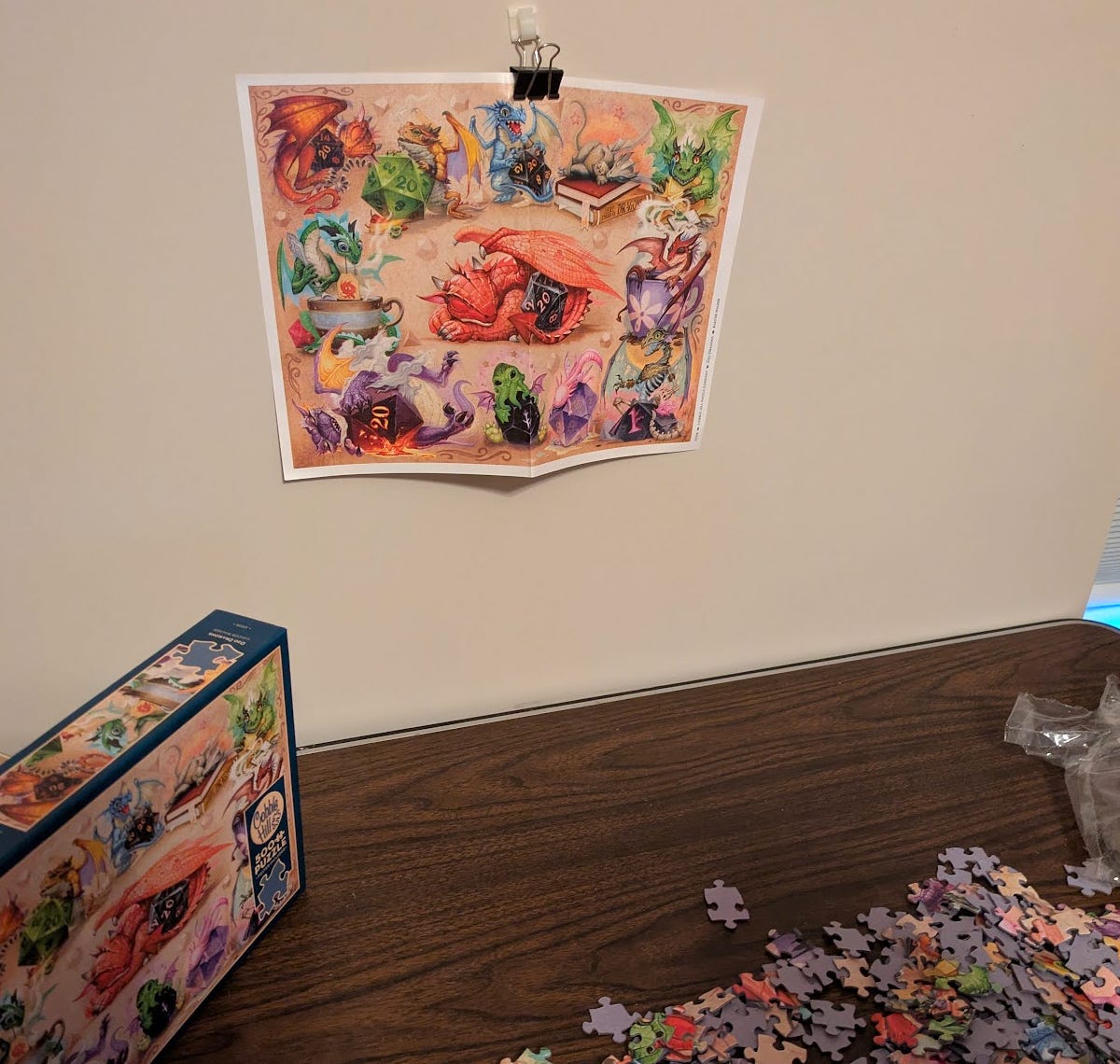 My favorite kind of problem is a solvable problem. I know a lot of people who just brute force or deal with their issues, but I try to notice pain points and deal with them. This isn’t just an AI thing, this is a life thing. For instance, I was working on a puzzle with my son, which I often do, and I realized that one of the big problems we have is being able to see the little guide picture. Some of my friends call this cheating, but my son is six, so whatever. Anyway, normally I lay the poster thing out on the table, but then we don’t have enough room for all the pieces when we’re first getting started. I had this epiphany that I could put it on the wall, with a clip. And yeah, yeah, it’s a little janky — a perfectionist (like the guys I studied when reviewing The Perfectionists by Simon Winchester) would have a nicer solution here — but this gets the job done and is nice and easy to reference.